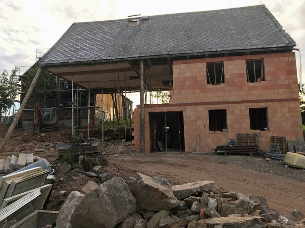 Durch Denkmalschutzauflagen sollte das Gebäude teilerhalten bleiben. Dadurch musste die Dachkonstruktion abgestützt werden und das darunter befindliche Mauerwerk wurde in mehreren Bauabschnitten abgerissen und erneuert.